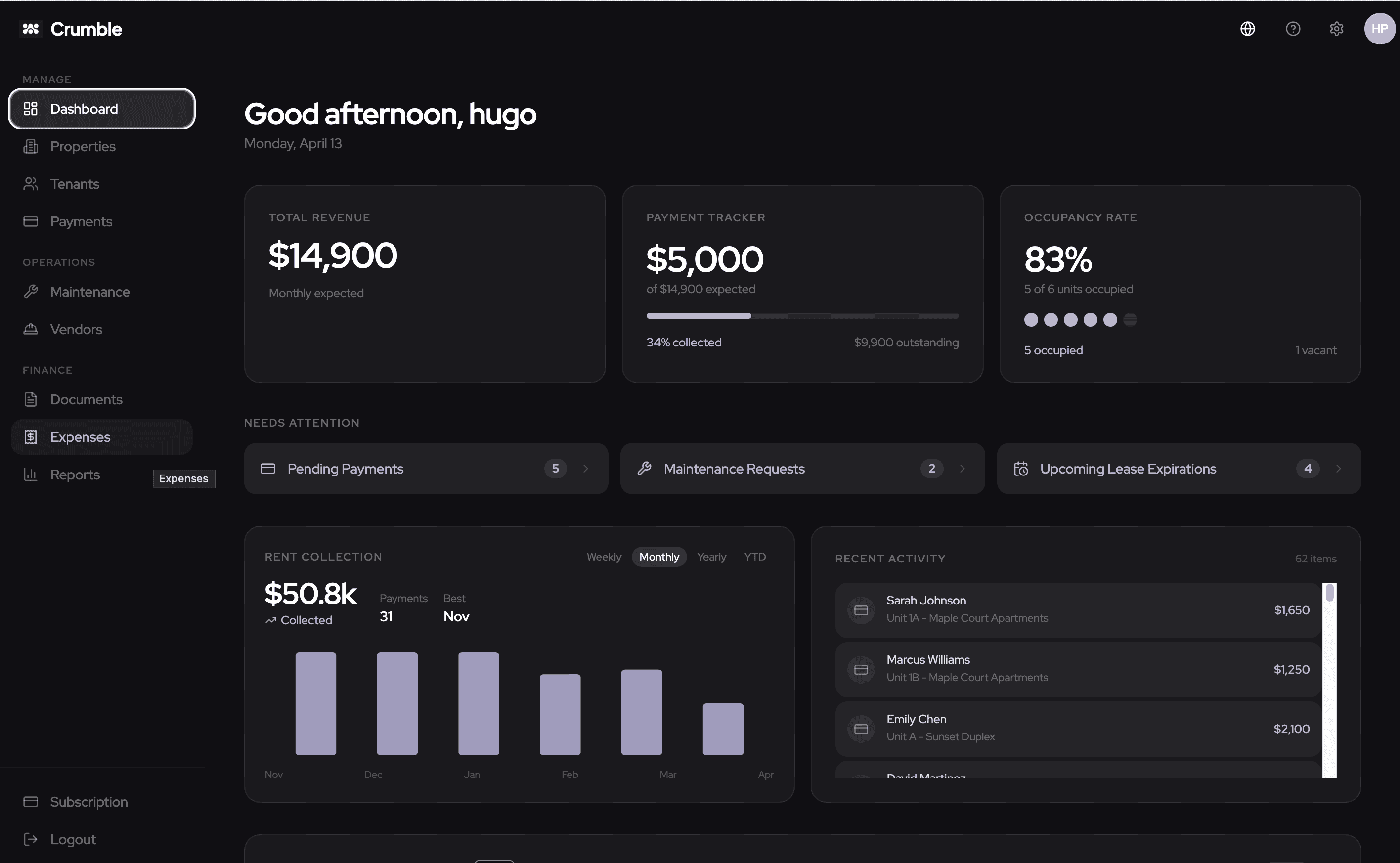 Track rent, expenses, and performance across all your properties — one dashboard, $9.99/month